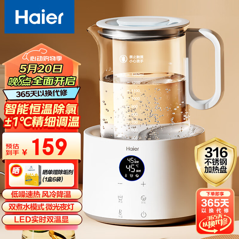海尔(Haier) 恒温水壶1.35L 多功能电水壶煮茶烧水壶热水壶冲泡奶粉婴儿恒温水壶价格:159.00元!