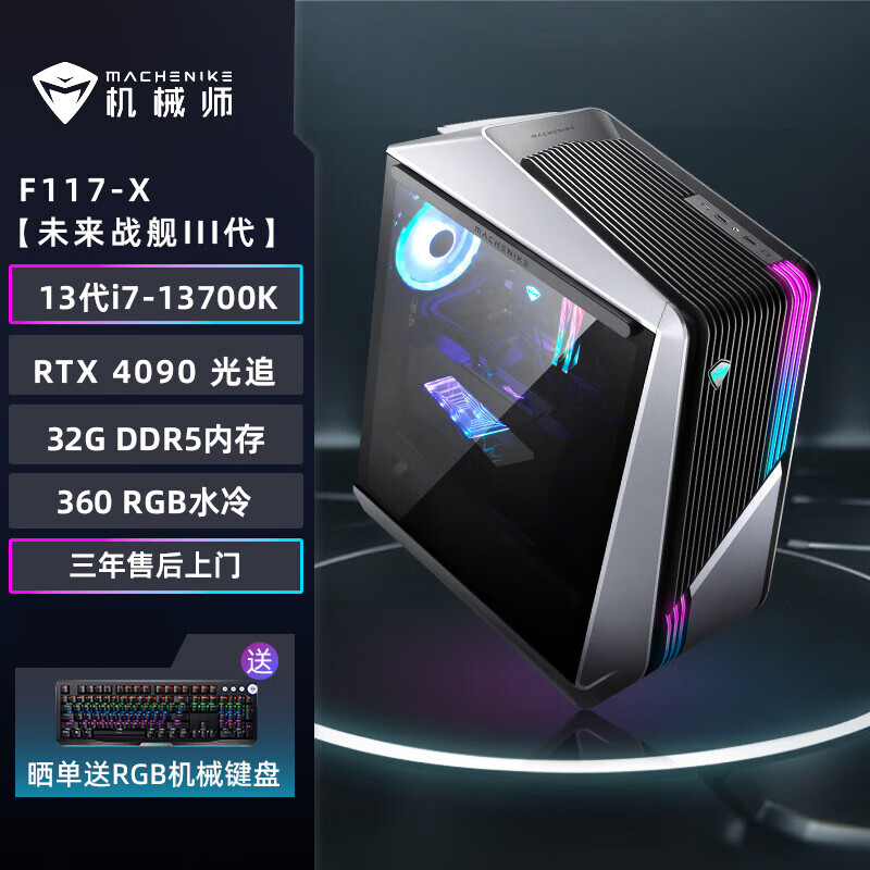 机械师(MACHENIKE)未来战舰 游戏台式机电竞电脑主机(13代i7-13700K 32G DDR5 1TSSD+2T RTX4090)360水冷价格:24974.00元!