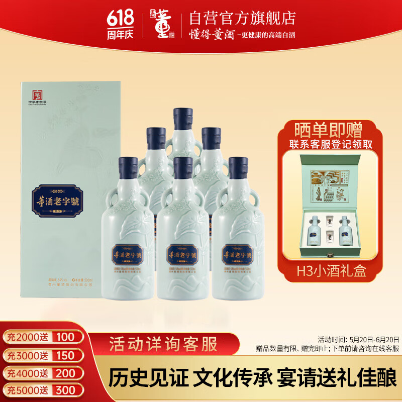 董酒 老字号H3 董香型 白酒 54度 500ml*6瓶 整箱装价格:1949.00元!
