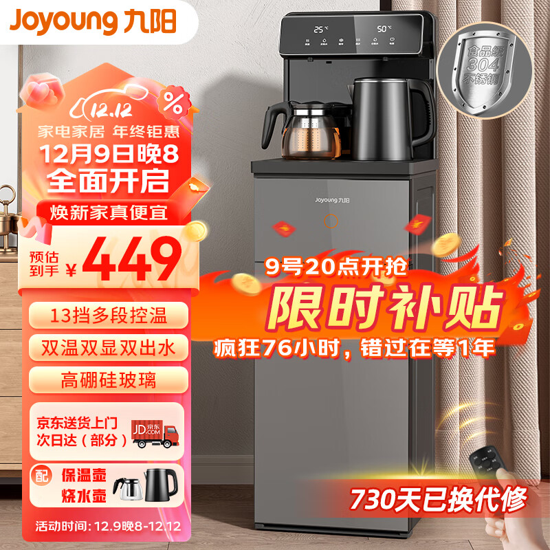九阳(Joyoung)家用茶吧机大屏下置水桶饮水机 双温双显双出水口 立式智能茶吧机 冷热款 【月石灰】价格:472.00元!