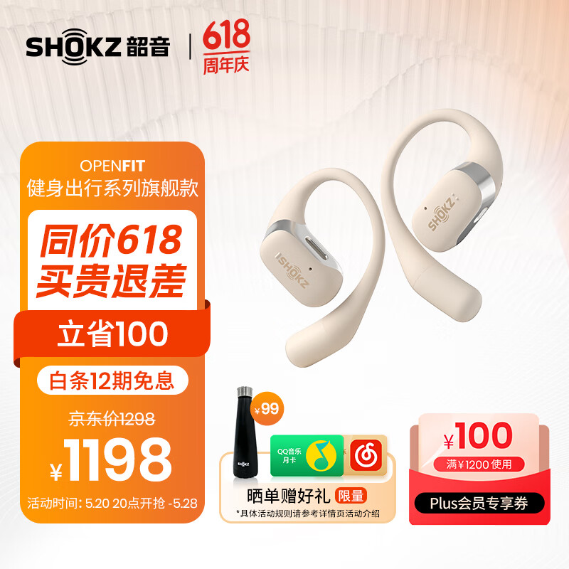 韶音(SHOKZ)舒适圈OpenFit开放式蓝牙耳机不入耳运动跑步长续航通话降噪T910 暖日白价格:1198.00元!