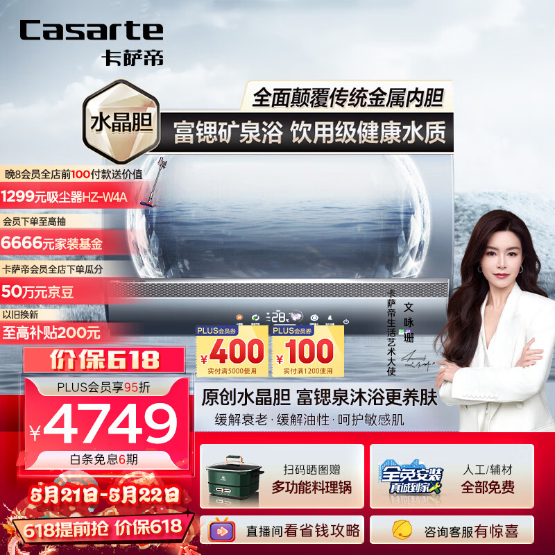 卡萨帝(Casarte)80升银河家用储水式电热水器原创水晶胆卫生间富锶汤泉变频速热一级能效 CES80H-PROS3CEK02U1价格:4999.00元!