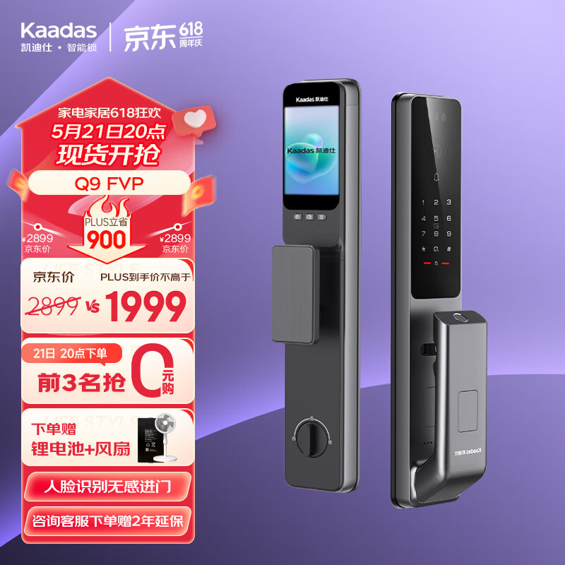 凯迪仕(kaadas)指静脉智能锁指纹锁 智能门锁可视猫眼大屏 人脸识别 Q9 FVP价格:2499.00元!