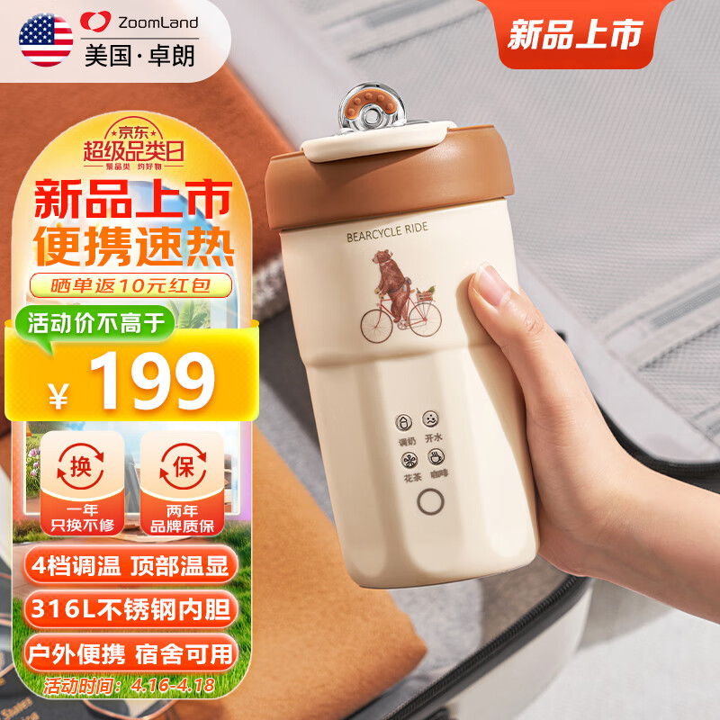 卓朗电热水杯便携式电烧水杯烧水壶 迷你折叠旅行电热水壶 随行冲奶泡茶办公室养生加热保温水杯价格:199.00元!