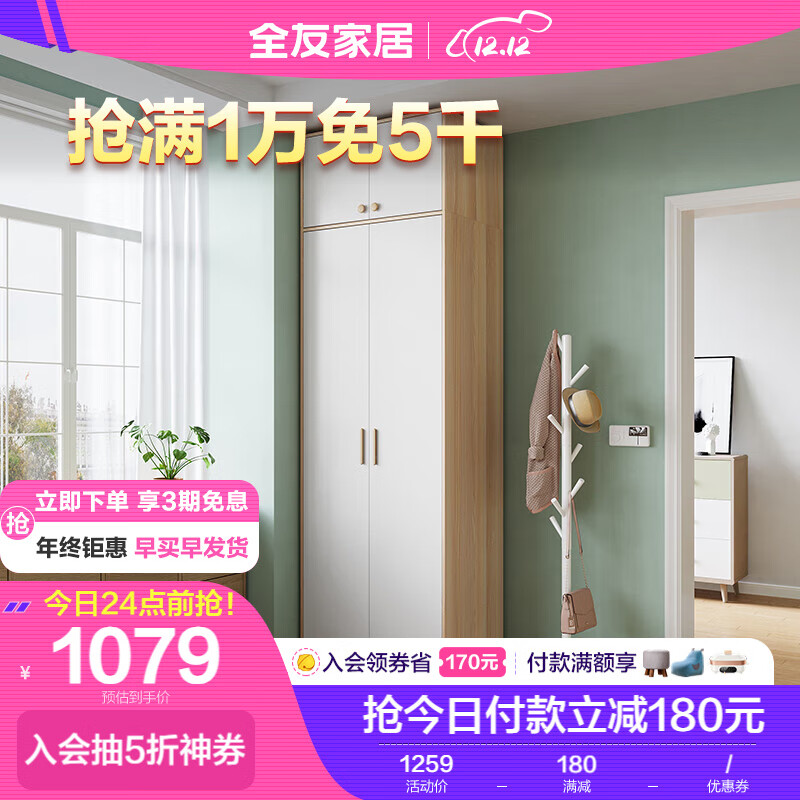 全友家居 衣柜现代北欧风二门衣柜卧室储物家具平开门衣柜126331价格:1259.00元!