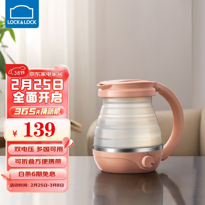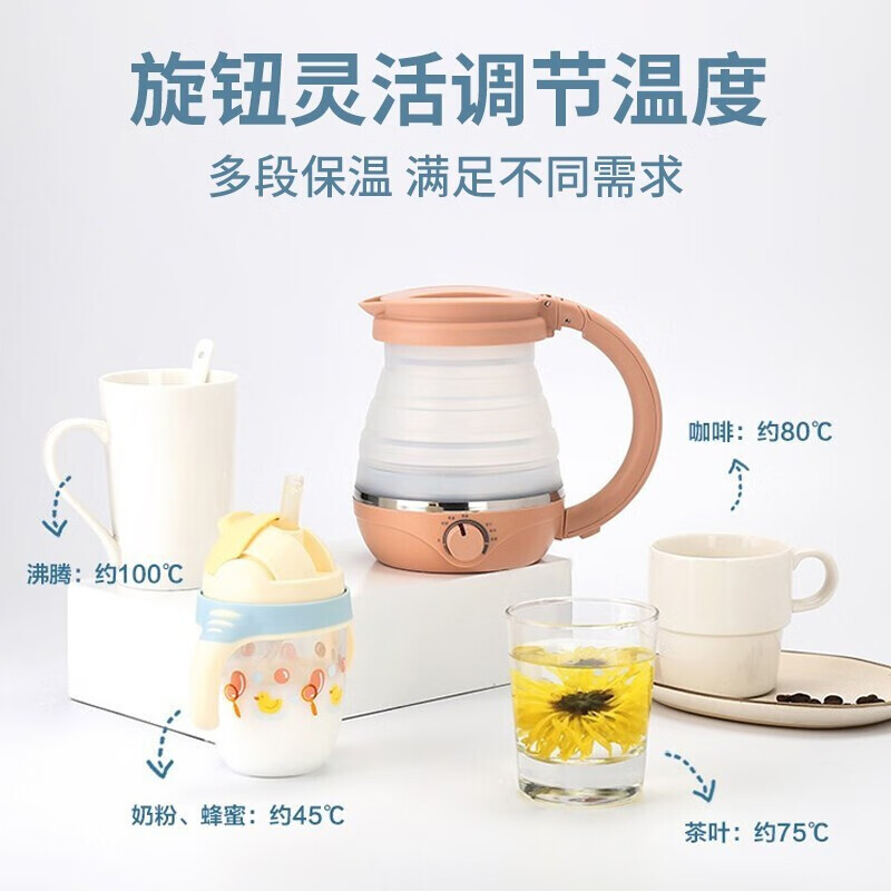 乐扣乐扣 折叠烧水壶 便携式烧水壶电水壶旅行电热水壶迷你烧水壶烧水杯出差旅行恒温折叠水壶热水壶 粉色 EJK812PIK 0.6L价格:209.00元!