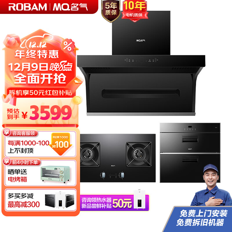 名气(MQ)老板抽油烟机烟灶套装7字型23吸力风量吸油烟机燃气灶消毒柜家用烟灶消三件套5505A+6820BT+x101A价格:3599.00元!