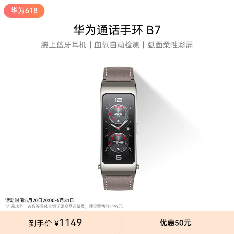 华为通话手环 B7华为手环智能手环腕上蓝牙耳机苍穹灰价格:1149.00元!
