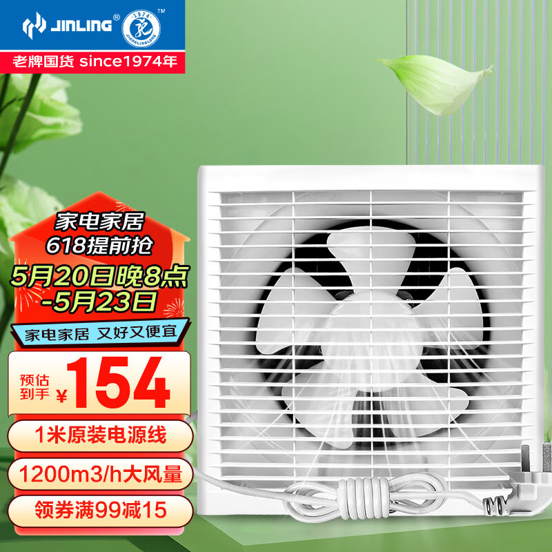 金羚(JINLING)排气扇厨房抽风机卫生间浴室排风扇墙窗式12寸APB30-6-1M1价格:169.00元!
