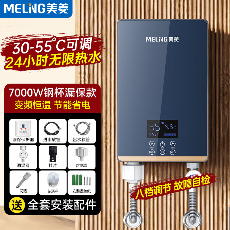 美菱MELNG 即热式热水器快速热小厨宝/7000W变频恒温家用/卫生间免储水电热水器MJR-DC7051价格:359.00元!