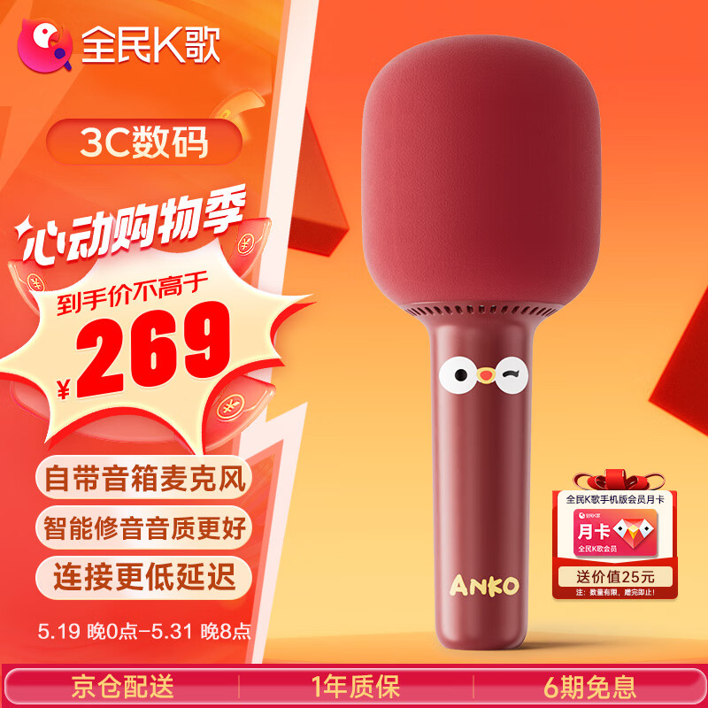 K歌麦克风 家庭ktv变声器儿童唱歌卡拉OK电视抖音直播降噪无线蓝牙k歌宝手持话筒音响S6红色价格:269.00元!