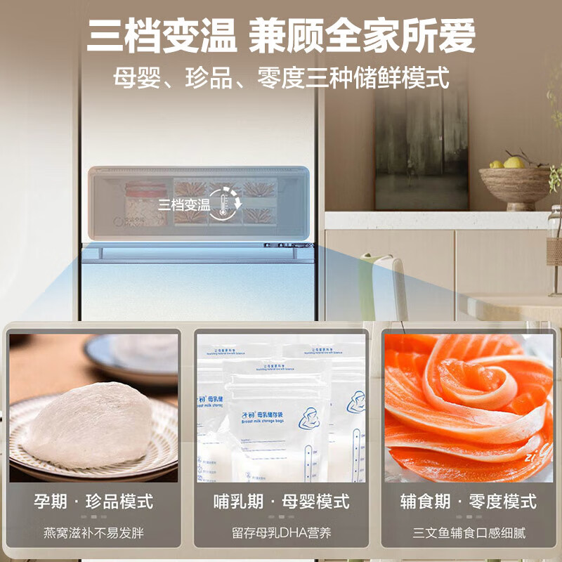 1、之前的冰箱太小了不够用,这款容量很大,还不占地方,对比了很多家还是相信海尔的质量。