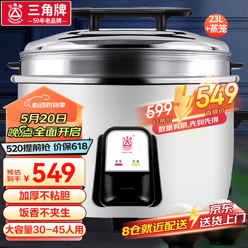 三角牌(Triangle)商用电饭煲 大容量电饭锅食堂大电饭煲酒店饭店大型超大蒸饭锅 23升+蒸笼 30-45人适用价格:599.00元!
