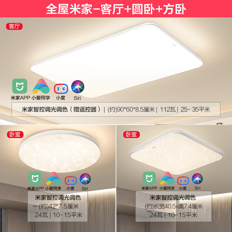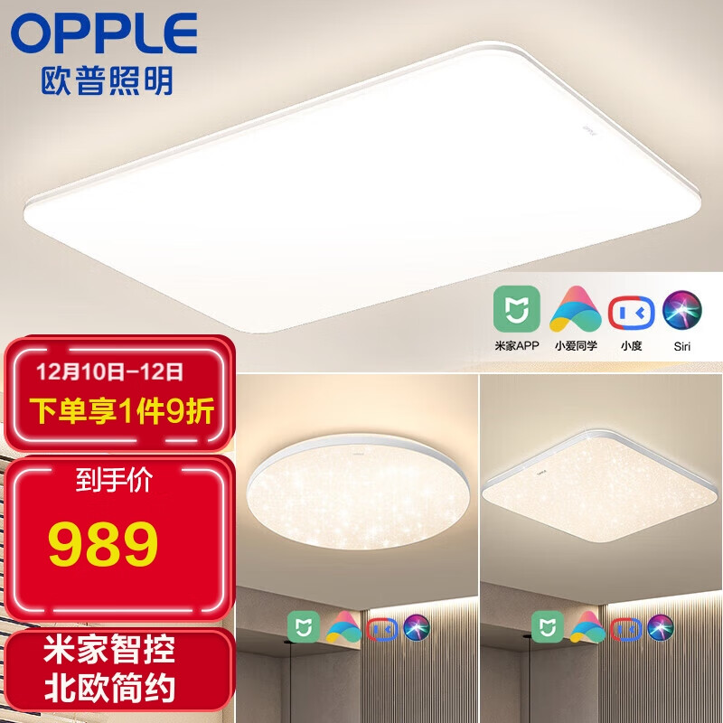 欧普照明(OPPLE)LED吸顶灯客厅灯时尚北欧简约超薄客厅卧室餐厅灯具灯饰套餐 智能音箱智控调光 凝月s白9价格:1099.00元!