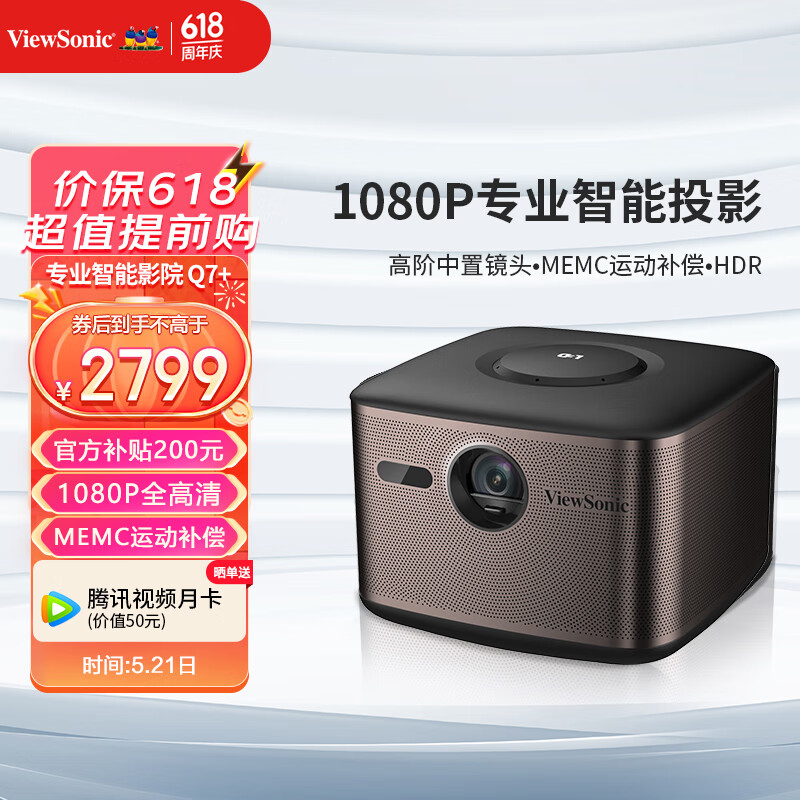 优派 Q7+ 投影仪家用 投影机卧室 智能家庭影院 手机同屏(1080P全高清 中置镜头 运动补偿)价格:2999.00元!