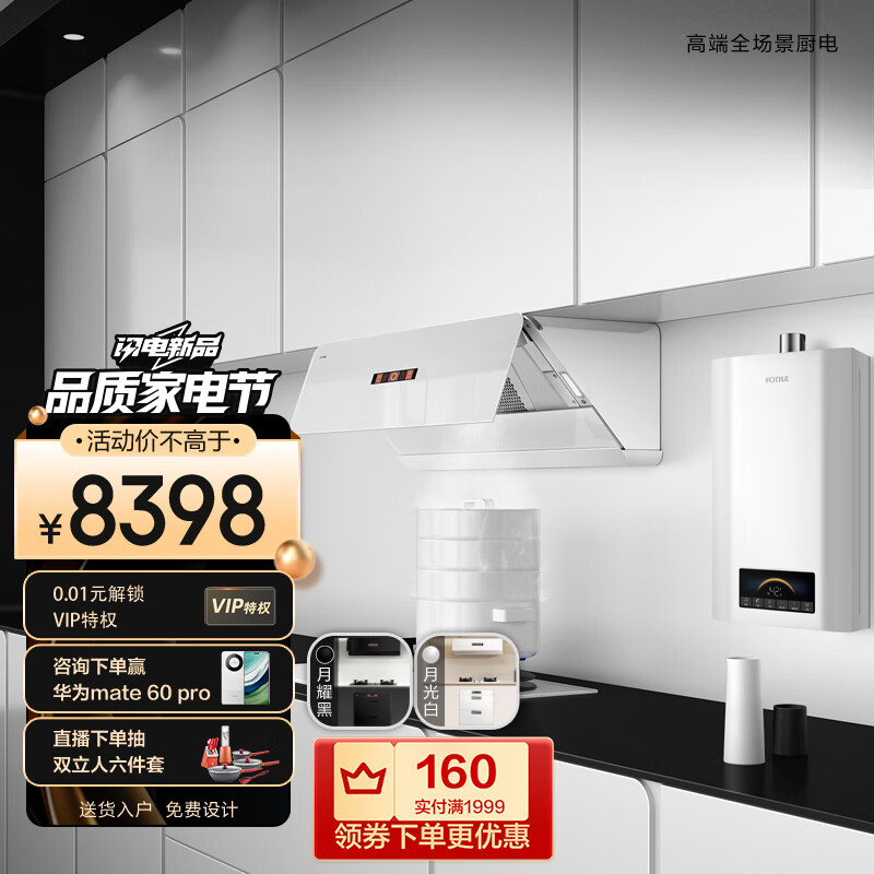 方太(FOTILE)侧吸烟灶热三件套 方太新月烟灶 24巡航风量变频烟机 5kW联动灶 16升伺服热水器F1-W+THF1-W+S16D1价格:8398.00元!