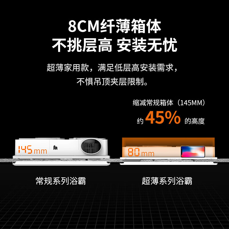 5、灯很亮,换气也快,微触开关使用很方便,延时关灯的设计很人性化,不用抹黑了,吹出来的风量也很大,很凉快。30*60的外形,刚好适合铝扣板吊顶,很不错