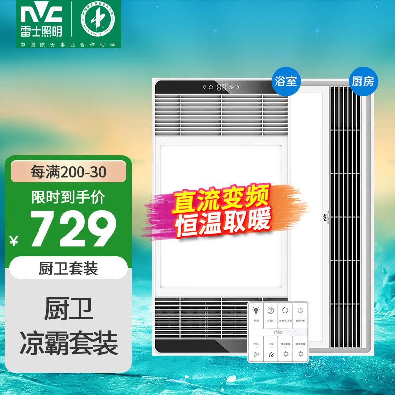 雷士(NVC)八合一智能风暖浴霸排气扇照明一体暖风机浴室取暖器+凉霸套餐A价格:849.00元!