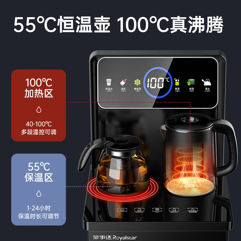 荣事达(Royalstar)家用茶吧机大屏下置水桶饮水机大屏数显双出水口立式智能遥控茶吧机温热款CY822价格:259.00元!