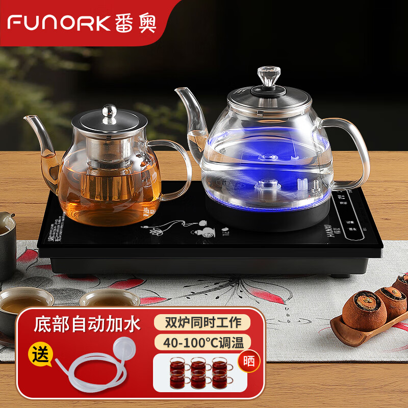 FUNORK 全自动底部上水电热烧水壶泡茶专用保温茶台一体机烧水器家用抽水茶桌茶几嵌入式茶具套装 保温款(尺寸37x20cm)价格:198.00元!