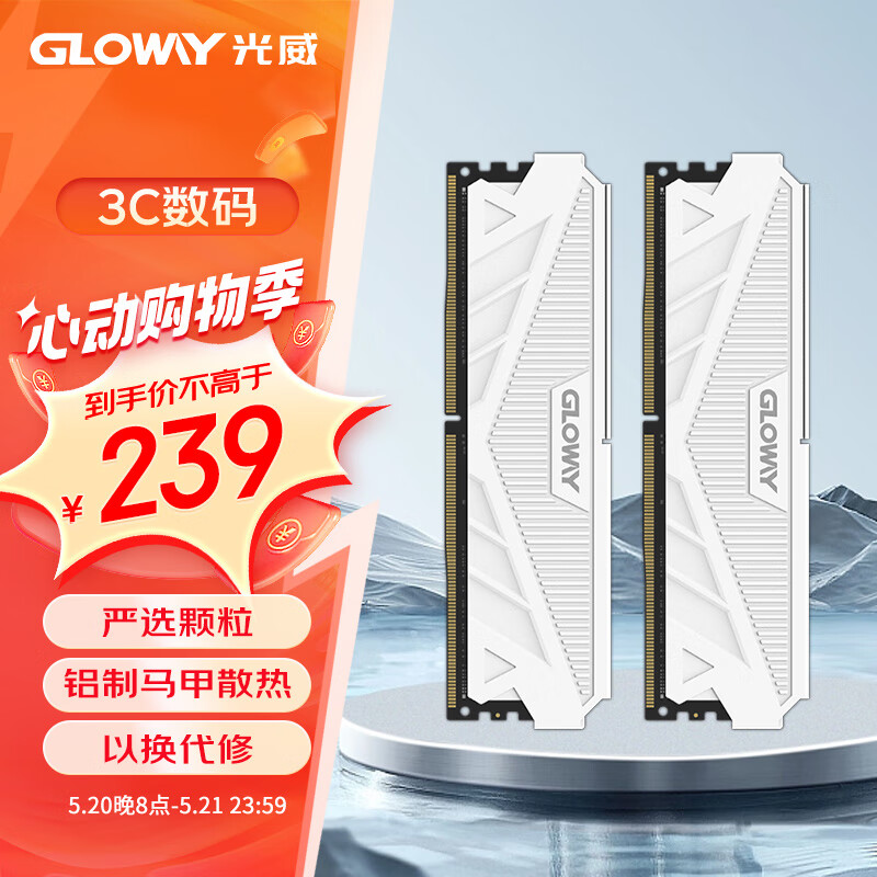 光威(Gloway)16GB(8GBx2)套装 DDR4 3600 台式机内存条 天策系列价格:239.00元!