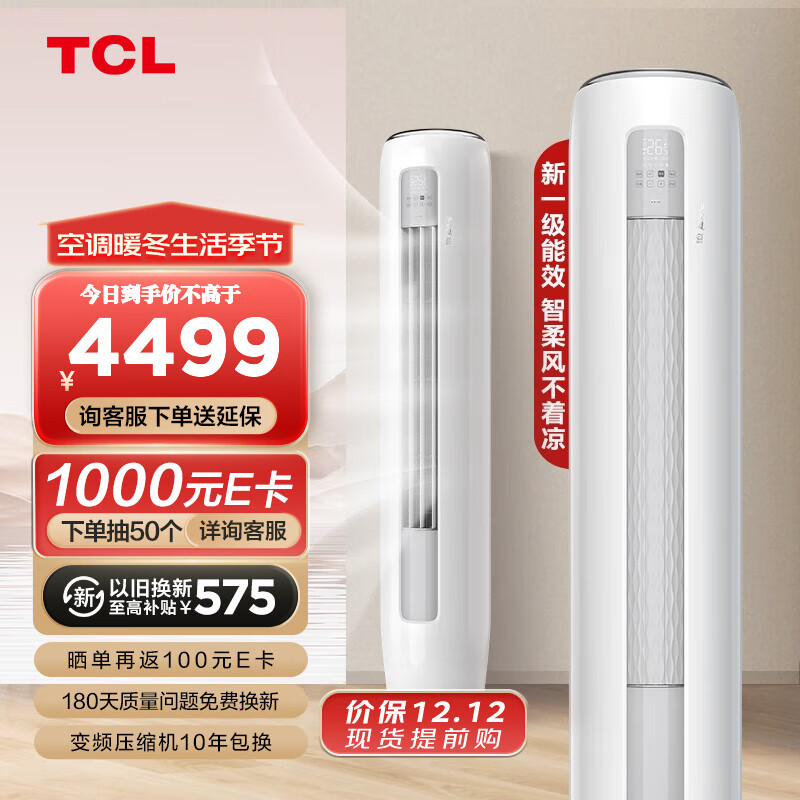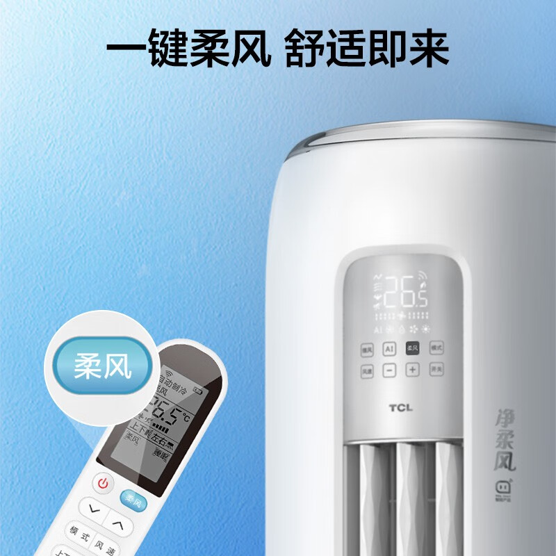 TCL空调 新一级能效 变频冷暖 智慧柔风 空调立式 柜机 柜式空调 以旧换新 大3匹 新一级智柔风 适用于:28-45㎡ 柜机价格:4499.00元!