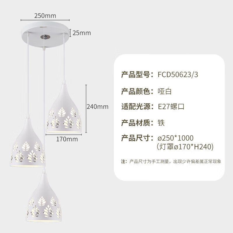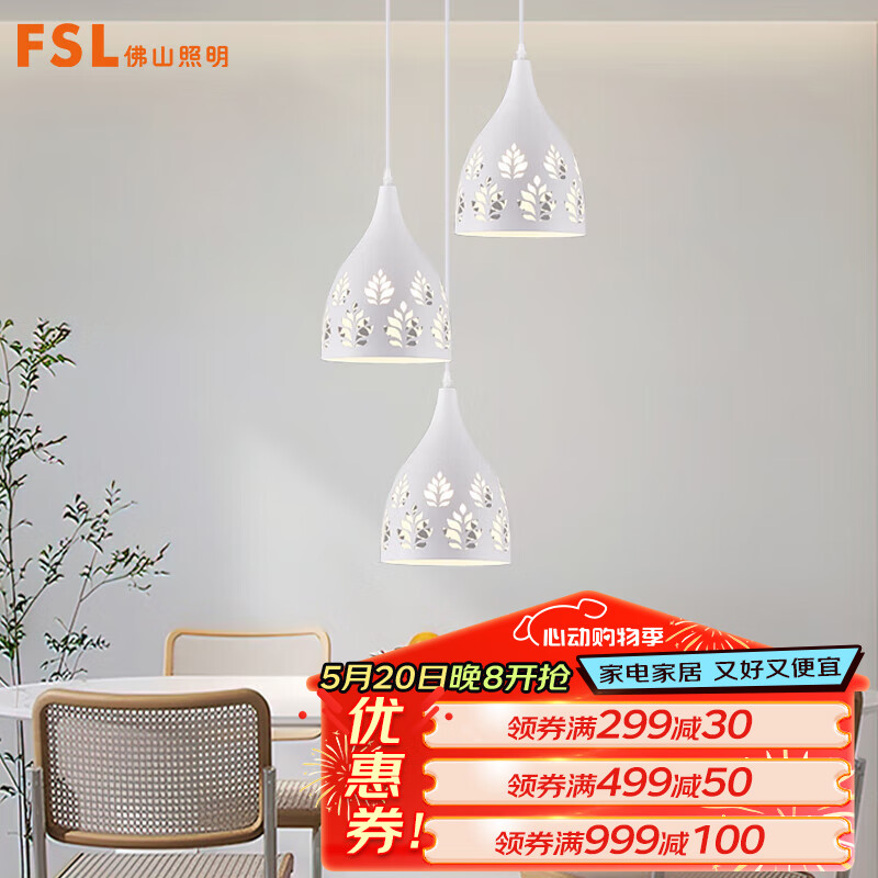 FSL佛山照明LED吊灯餐厅灯具三头吸顶餐吊灯饰创意吧台灯圆盘50623价格:239.00元!
