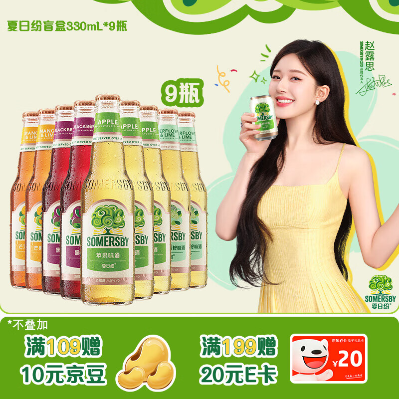 夏日纷Somersby混合口味果味酒330ml*9瓶盲盒(口味随机)整箱装 年货送礼价格:79.00元!