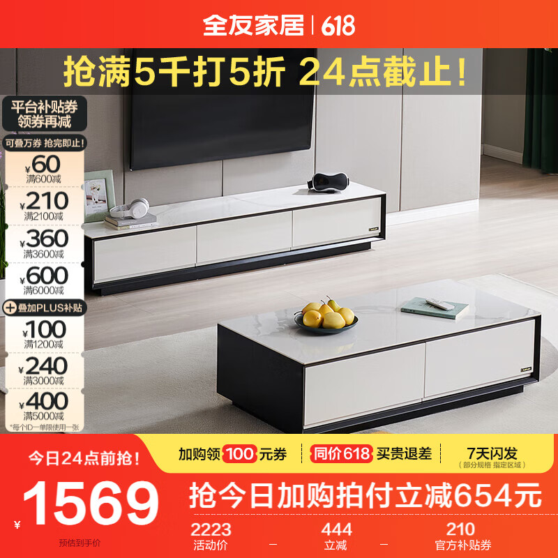 全友家居 茶几电视柜大小户型岩板茶台收纳附柜现代客厅家具DW1055价格:2223.75元!
