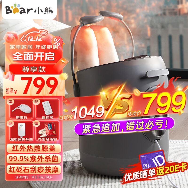 小熊(Bear)泡脚桶 足浴盆 泡脚盆洗脚盆加热全自动按摩过膝泡脚桶 爱膝桶 送长辈节日礼品ZYP-E10J1价格:1049.00元!