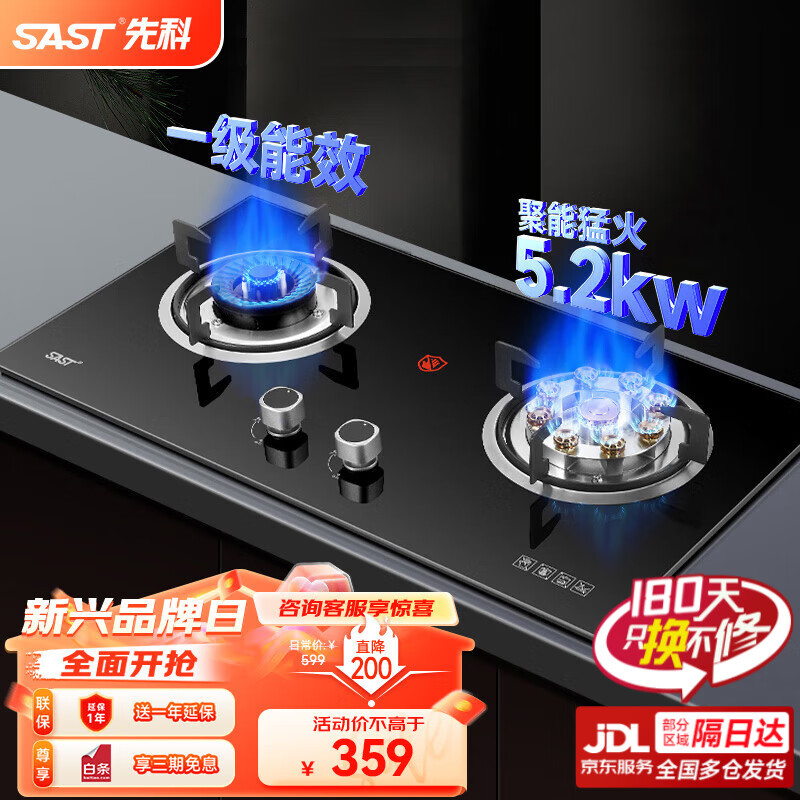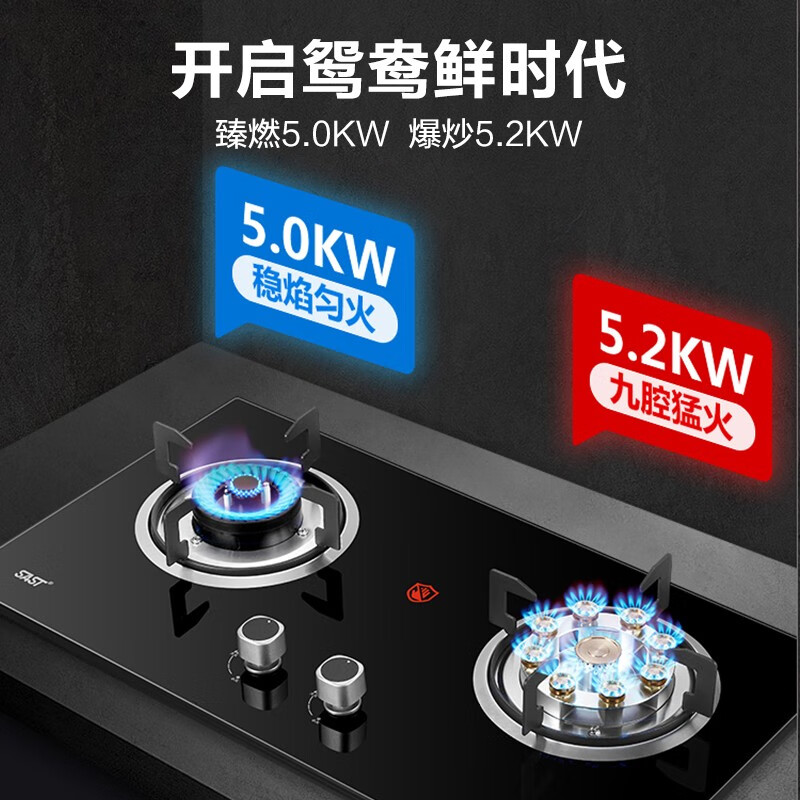 先科(SAST)燃气灶双灶鸳鸯灶液化气全进风猛火灶天然气大火力家用爆炒炉灶 【品质严选】5.2KW/纯铜火盖/全进风 -天然气价格:699.00元!