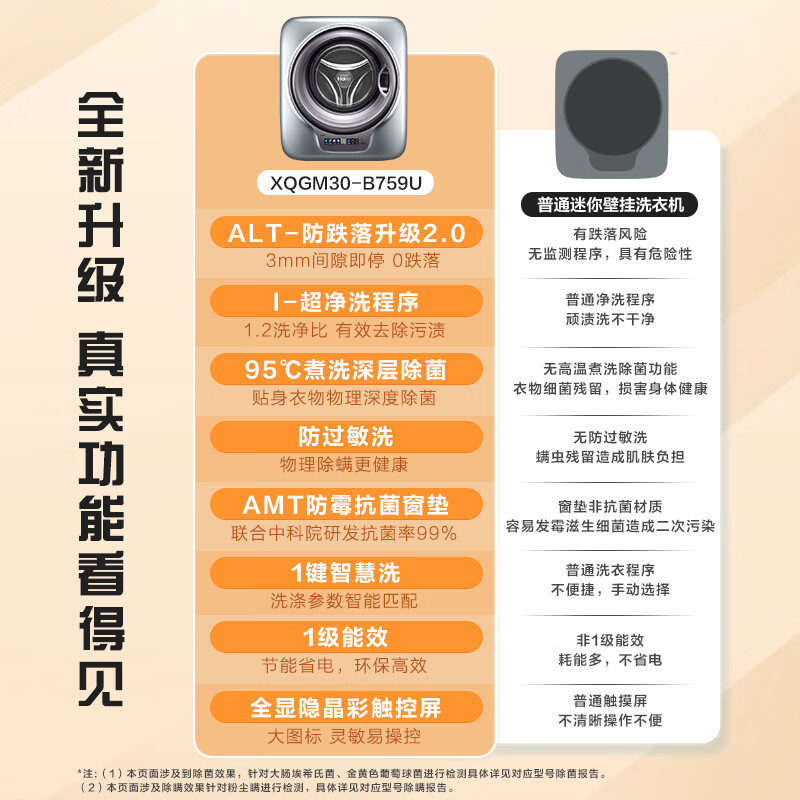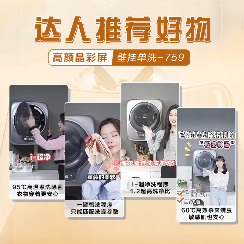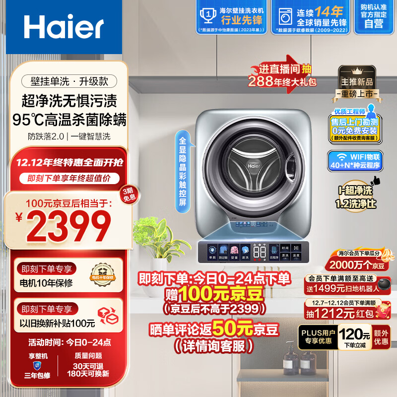 海尔(Haier)壁挂洗衣机 滚筒洗衣机迷你 婴儿洗衣机 儿童洗衣机 内衣洗衣机 3公斤 超净洗晶彩屏XQGM30-B759U1价格:2599.00元!