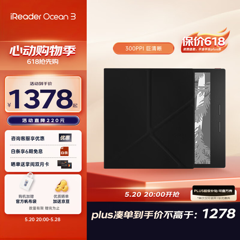 掌阅iReader Ocean3 7英寸电子书阅读器墨水屏电纸书电子纸便携阅读看书学习32GB儒雅黑支架保护套套装价格:1378.00元!