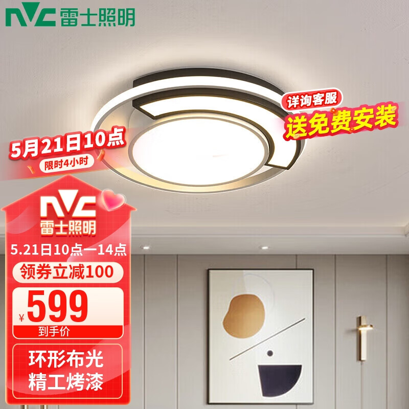 雷士照明(NVC)LED室内吸顶灯现代简约卧室吸顶灯 书房灯饰灯具 叠舞32w 圆形价格:699.00元!