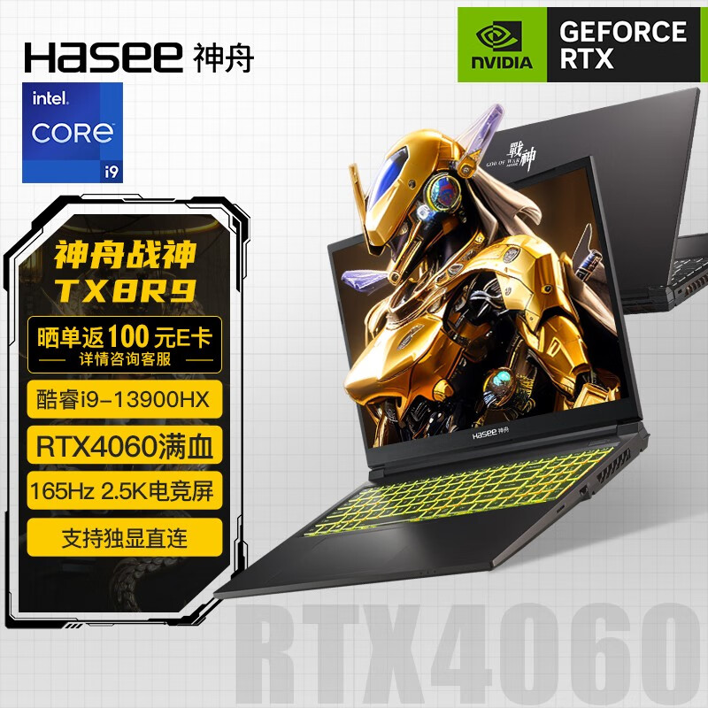 神舟(HASEE)战神TX8R9 13代英特尔酷睿i9 16英寸游戏本 笔记本电脑(13代i9-13900HX 16G 1TB RTX4060 165Hz 2.5K电竞屏)价格:7999.00元!