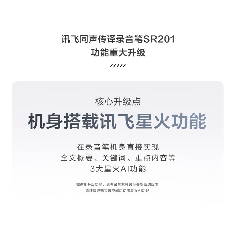 科大讯飞(iFLYTEK)智能录音笔SR201 免费转写 中英文实时互转 触摸屏融合按键操作 专业降噪 64G+云储存 星空灰价格:1299.00元!
