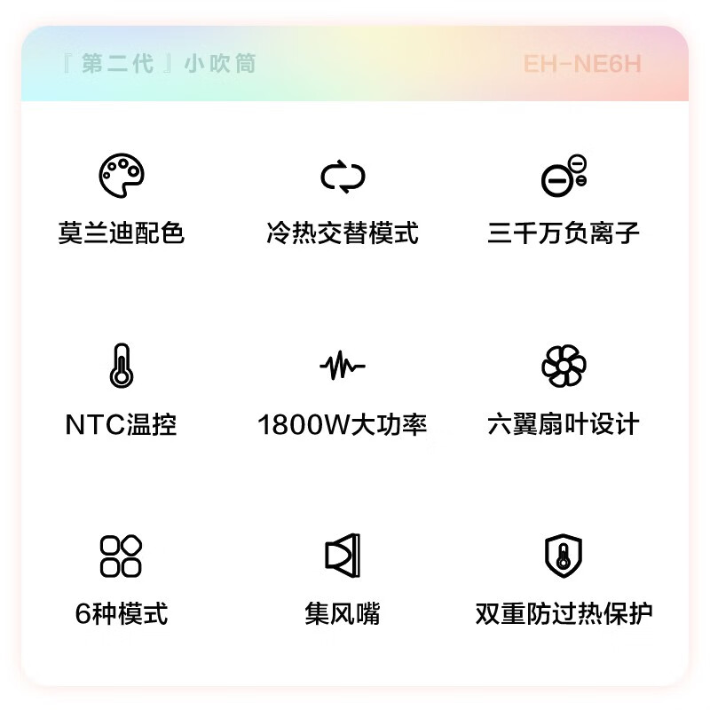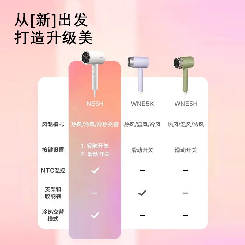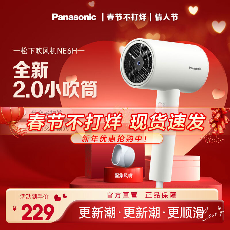 松下电吹风机NE6H 恒温速干负离子护发 大风力 冷热交替 女友生日新年礼物 宿舍家用便携吹风机 全新2.0小吹筒|NE6H-W价格:229.00元!
