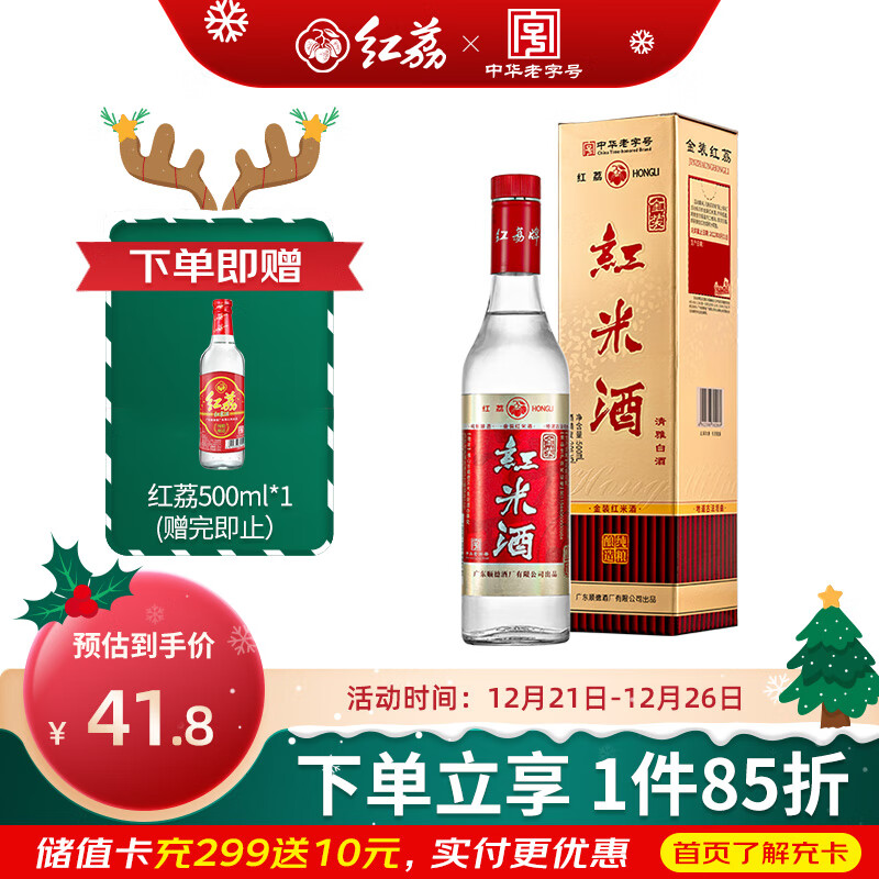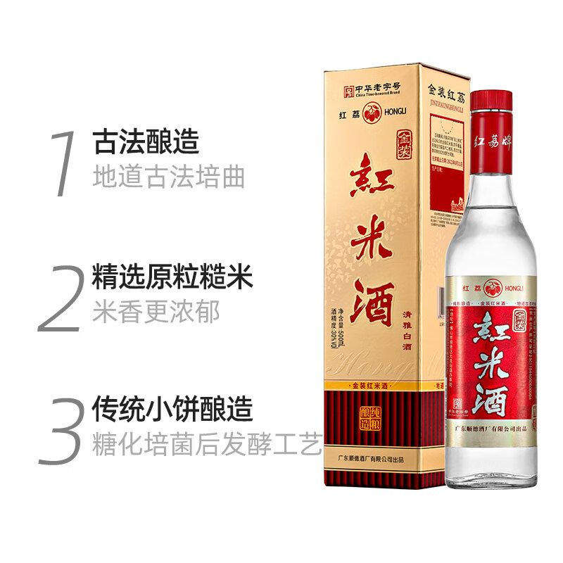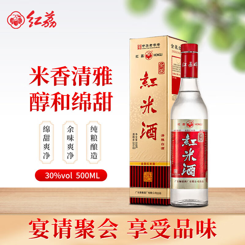 红荔牌红荔清雅型白酒 30度金装红米酒500ml礼盒装 婚庆送礼低度酒价格:49.18元!