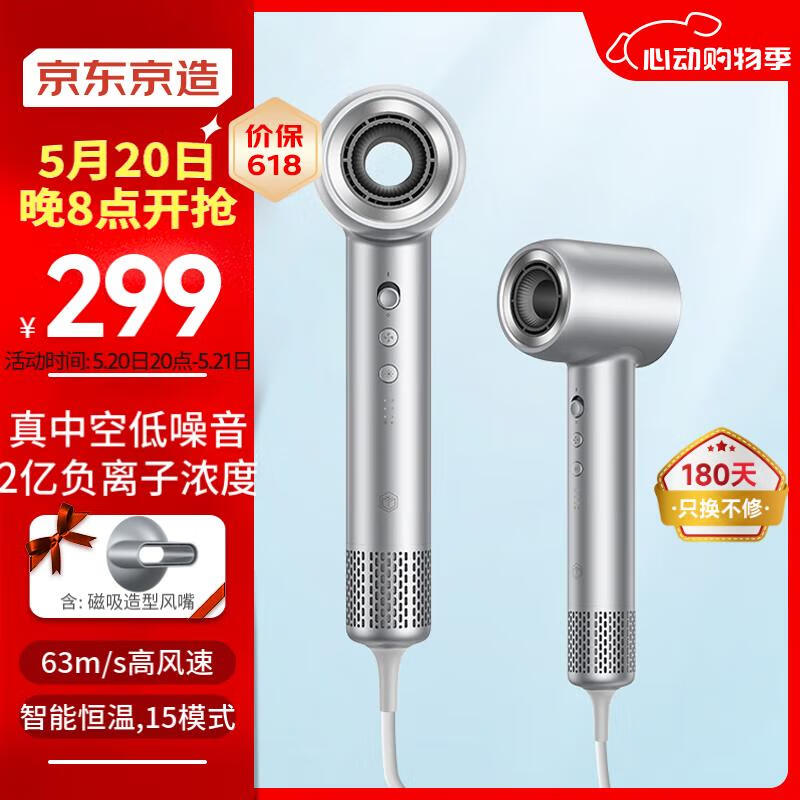 京东京造 智能高速吹风机套装 负离子吹风机家用电吹风机大功率电吹风筒速干无叶 520情人节礼物520礼物 银价格:349.00元!