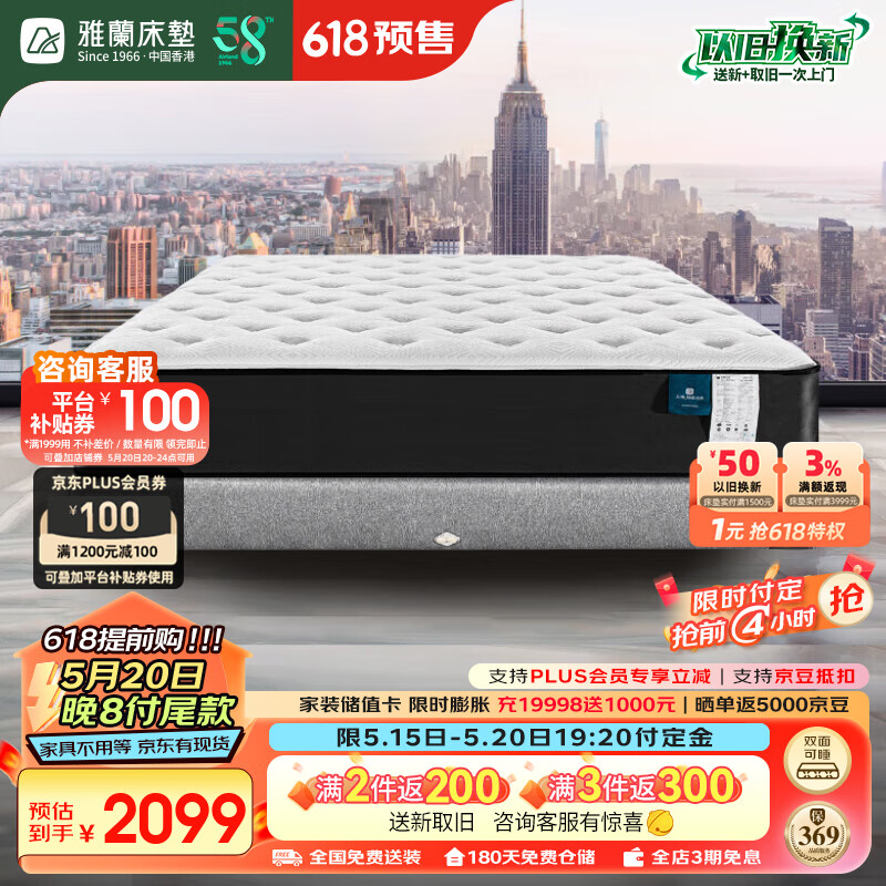 雅兰50周年纪念款 软硬适中独袋弹簧乳胶床垫 蘭朋友舒适2.0 1.8*2米价格:2699.00元!