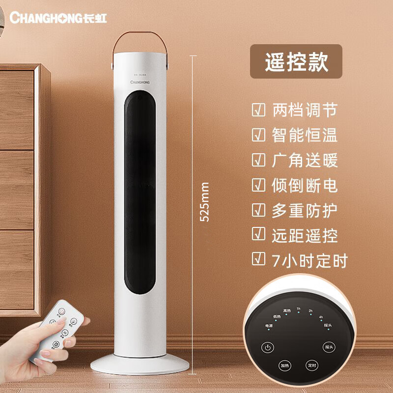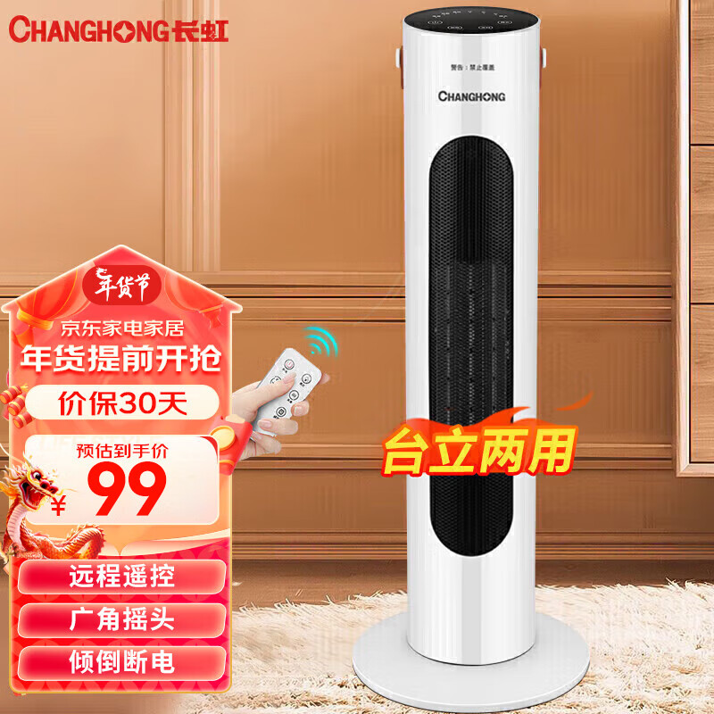 长虹 CHANGHONG 取暖器/暖风机/电暖气/取暖器家用/台立两用 遥控电热三档调节CDN-RN63PRT价格:99.00元!