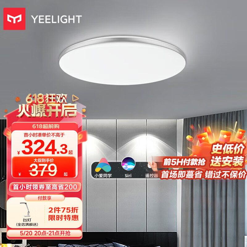 Yeelight易来 灵犀智能LED卧室吸顶灯mini 米家联动 语音控制 灯价格:499.00元!