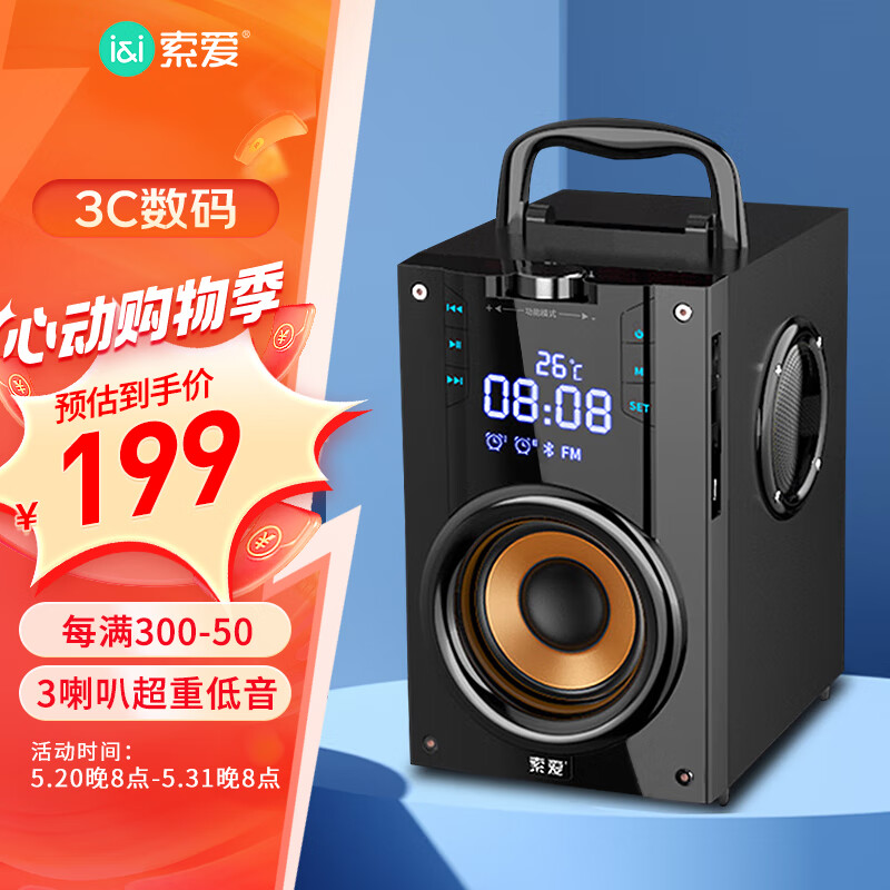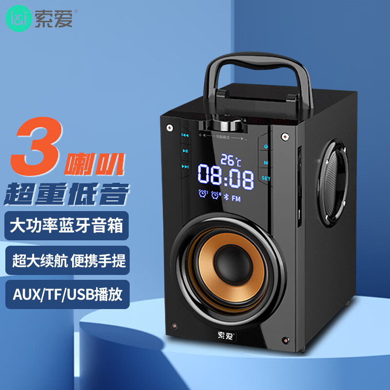 索爱(soaiy) SA-Q22 无线蓝牙音箱户外大音量广场舞3d环绕音响小型家用地摊摆摊喇叭闹钟手提便携式价格:199.00元!