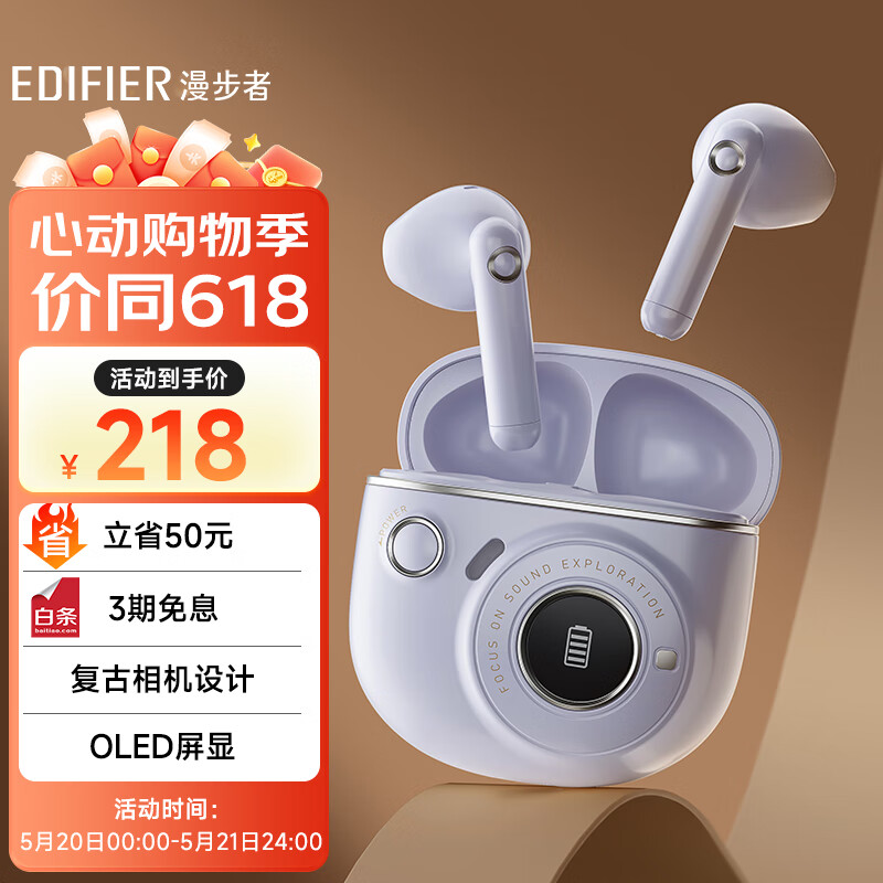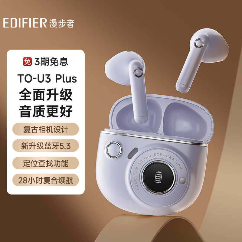 漫步者(EDIFIER)TO-U3 Plus真无线蓝牙耳机 半入耳式耳机 适用苹果华为小米 蓝牙5.3 礼物礼盒 伊甸紫价格:248.00元!