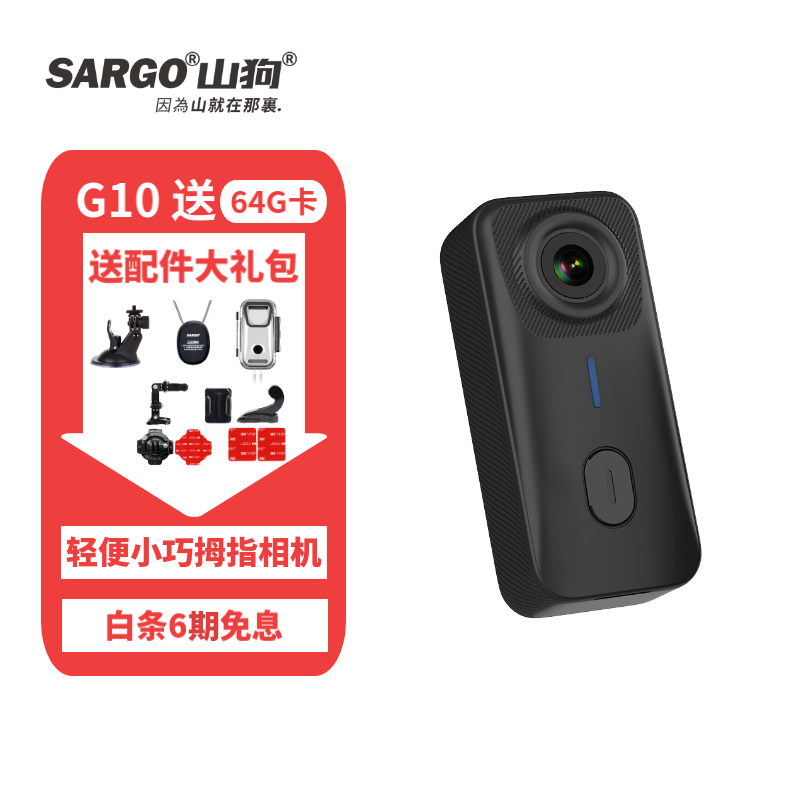 山狗G10 拇指运动相机 高清骑行摩托车行车记录仪自行车头盔vlog钓鱼户外水下小型非360全景摄像机价格:289.00元!