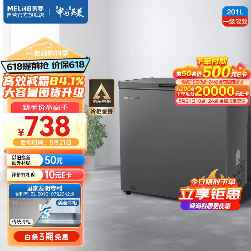 美菱(MELING)201升减霜家用冰柜冷藏冷冻转换冷柜一级能效节能省电BC/BD-201DTCX单温母婴母乳小冰箱价格:738.00元!