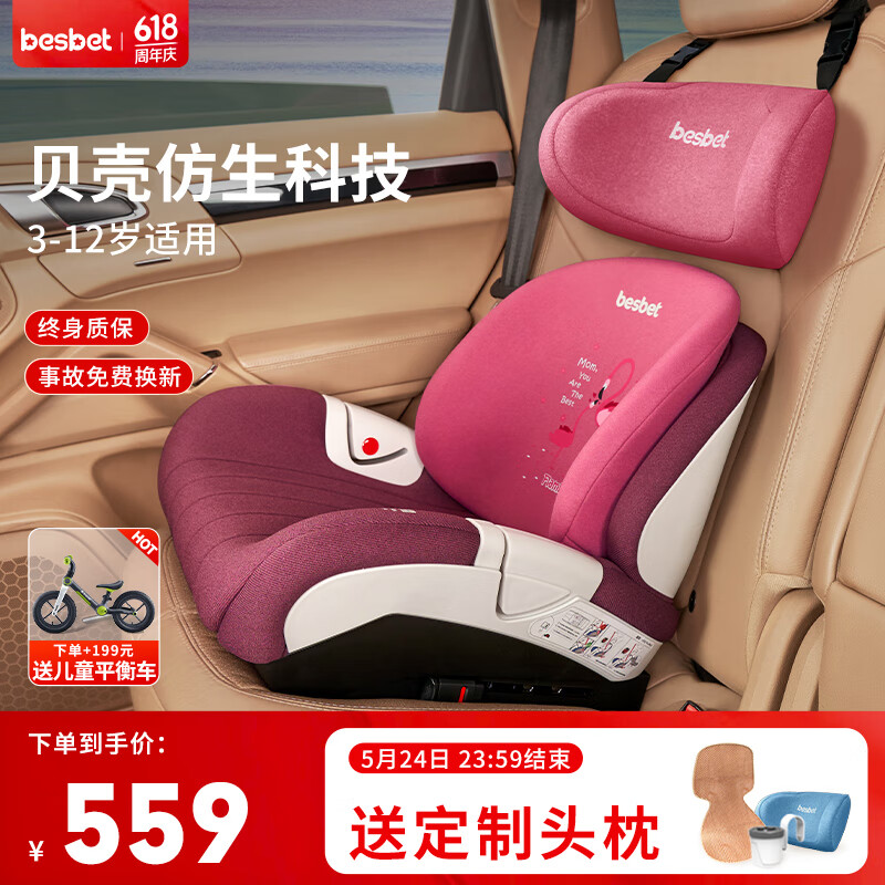 贝思贝特(besbet)儿童座椅3-12岁大童汽车用宝宝便携式简易增高垫 火烈鸟价格:639.00元!