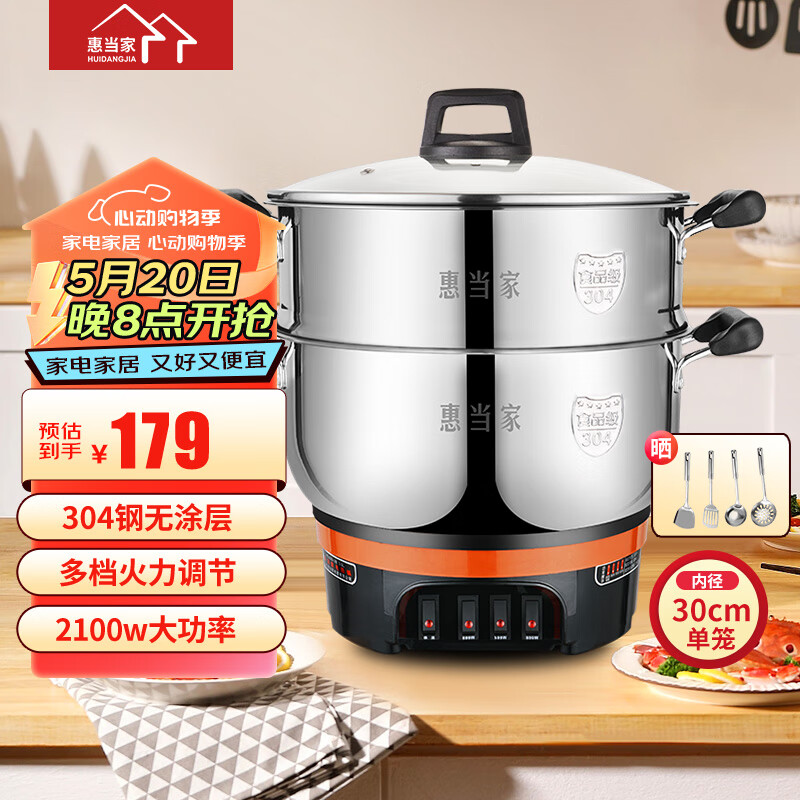 惠当家(Hui Dang Jia)电锅多功能电热锅电炒锅家用电蒸锅一体电煮锅加厚304不锈钢电火锅G08-30价格:179.00元!