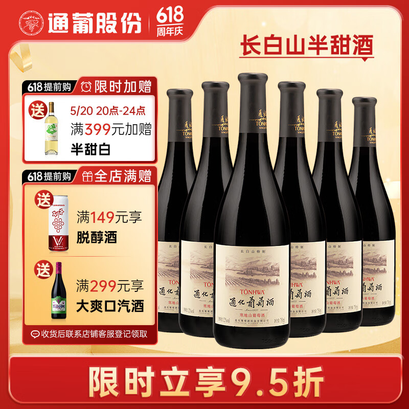 通化 1937长白山半甜型葡萄酒12%vol 晚安红酒 750ml*6 整箱装 果酒价格:187.00元!