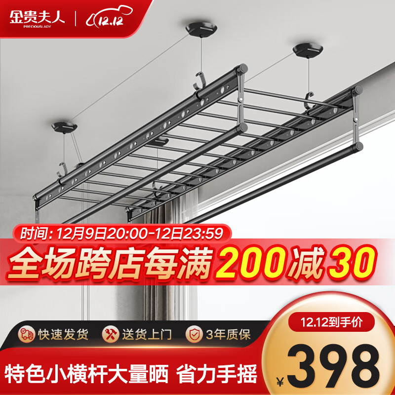 金贵夫人升降晾衣架阳台手摇晾衣杆四杆室内折叠晒衣架凉 2.4米+10个衣架价格:458.00元!